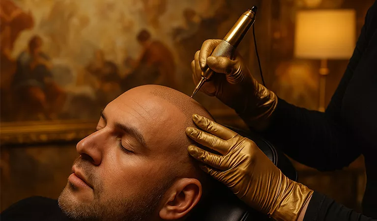 Over time, scalp micropigmentation can naturally fade or shift in tone. Touch-up sessions are typically performed 6–24 months after the original treatment to restore vibrancy and redefine detail. Corrections are also available for pigment inconsistencies or outdated results from prior procedures.
